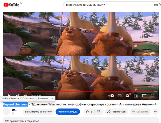 выложенные год назад серии из анаморфных стереопар моих набирают от 200-1000 просмотров в ютубе