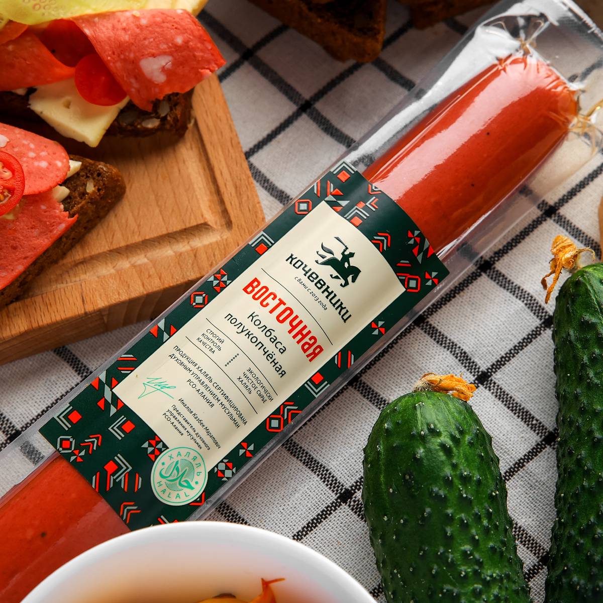 Полукопченая колбаса «Восточная» Халяль ТМ «Кочевники» производится с соблюдением всех религиозных норм и традиций, что делает ее особенно ценной для мусульманского потребителя. Каждый этап производства - от выбора качественных ингредиентов до попадания на прилавок - строго контролируется, чтобы гарантировать чистоту и соответствие стандартам Халяль.