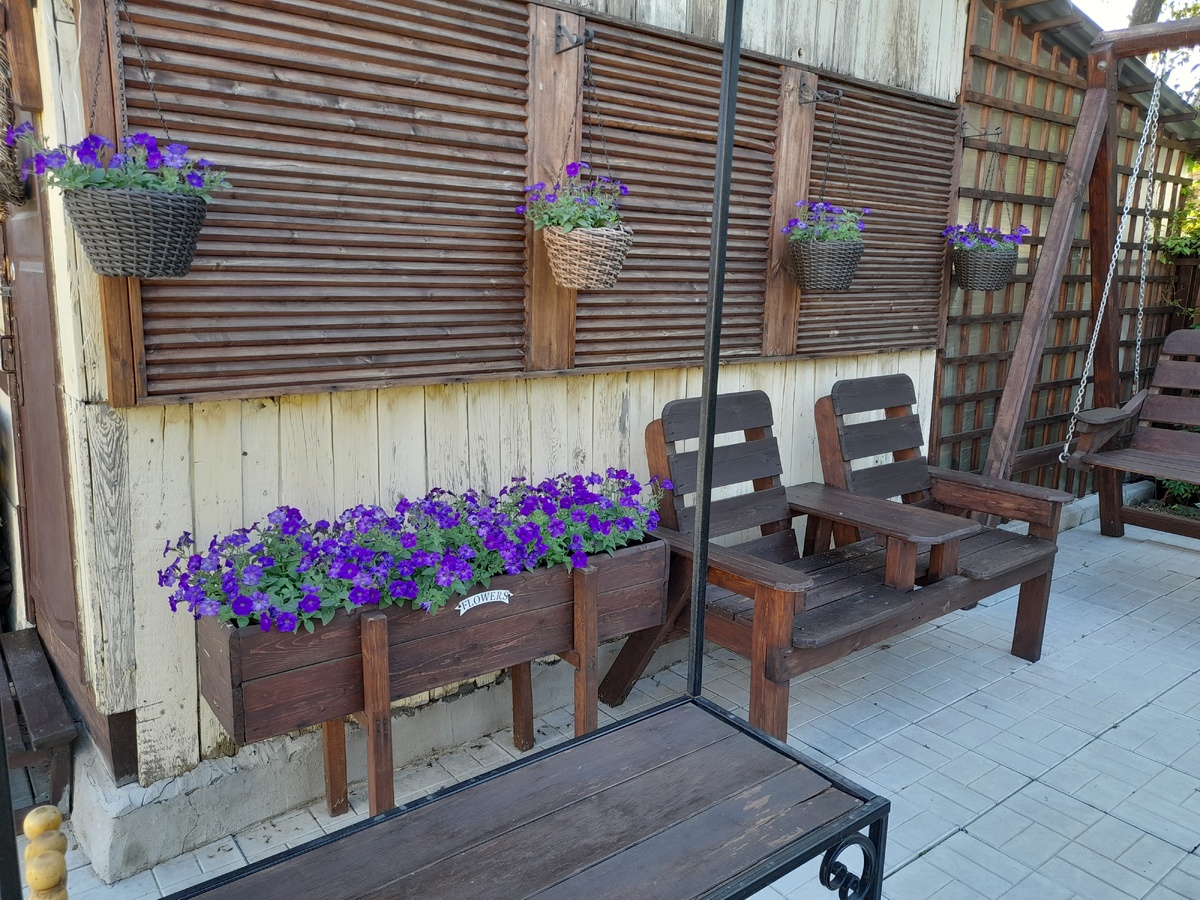 Контейнерный сад у меня довольно большой. Уже второй год помимо традиционных однолетников в кашпо растут многолетники и огородные культуры. Из однолетников в саду только петунии, пеларгонии и колеусы. Петунии всего двух сортов. Не люблю пестроту, одной-двух расцветок, сочетающихся между собой, мне вполне достаточно. Пеларгоний у меня тоже мало, всего три сорта: розебудная, ангел и плющелистная. Плющелистная мне нравится больше всех. В этом году у меня ее много, но хочется еще больше. Колеусов в этом сезоне стало уже четыре разновидности. Два новых сорта очень хороши. Сохраню. С многолетниками все отлично. Хосты, ге...ры, папоротник, бузульник и очитки отлично перезимовали и увеличились в объемах. К ним добавились три кашпо с клематисами второй группы обрезки. С контейнерным огородом тоже все хорошо. Фасоль в ящике благополучно оплетает деревянную стену и скоро будет цвести. Перцы и томаты завязались, ждем созревания. Томатов и перцев в этот раз по три сорта. Землянику начали срывать е