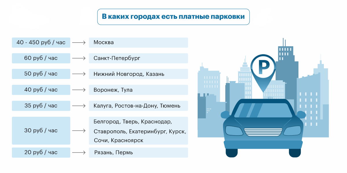 Самый высокий штраф за неоплаченную парковку взимается в столице. В таблице ниже вы можете увидеть, какие санкции предусмотрены за это нарушение в Москве и других городах России: