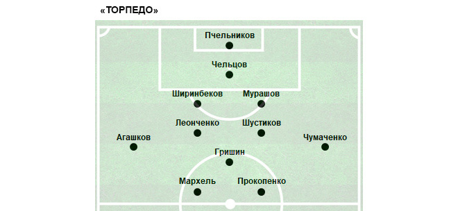 «Торпедо»: Пчельников, Леонченко, Чельцов, Чумаченко, Мурашов (№12 Востросаблин, 69), Шустиков - к, Гришин, Мархель (№17 Талалаев, 80), Прокопенко (№13 Борисов, 72), Ширинбеков, Агашков.