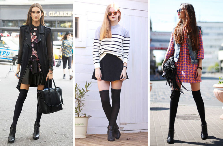 Носить мини желают многие, однако в силу воспитания такой образ позволить себе готовы далеко не все. Чтобы ноги не казались слишком голыми, можно надеть гольфы. Модели могут быть лаконичными, чтобы не быть чересчур сексуальными. В идеале они сочетаются с цветом платья, юбки.