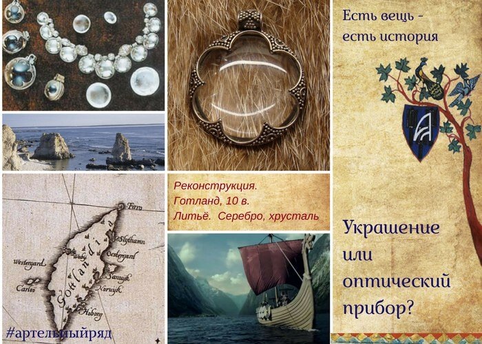 За что мы любим украшения, найденные на о.Готланд (Швеция) в Балтийском море, так это за то, что с ними, как и с самим островом, связано множество историй, мифов, легенд и прочее, и прочее. А кроме того, среди найденного есть такое, что хоть сейчас – надевай и носи. Стильно. Вот эта реплика подвески с линзой из горного хрусталя, например. С линзой – оценили? Оригинал этого подвеса был выполнен несколько веков назад. Кто, каким образом и на каком оборудовании точил подобные линзы? Как они попали на Готлданд, где нет собственных месторождений хрусталя? И только ли в качестве украшений их использовали (при раскопках были найдены как линзы, оправленные в серебро, так и «голые»). Вот вам интересного в ленту по этому поводу:
