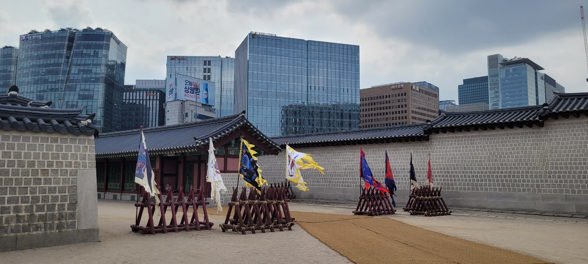 Мы предприняли вторую попытку (удачную!) посмотреть на развод караула во дворце Кёнбоккун. Первый раз мы ухитрились попасть туда как раз в тот день, когда ничего не работало: и у дворца, и у караула - у всех был выходной.