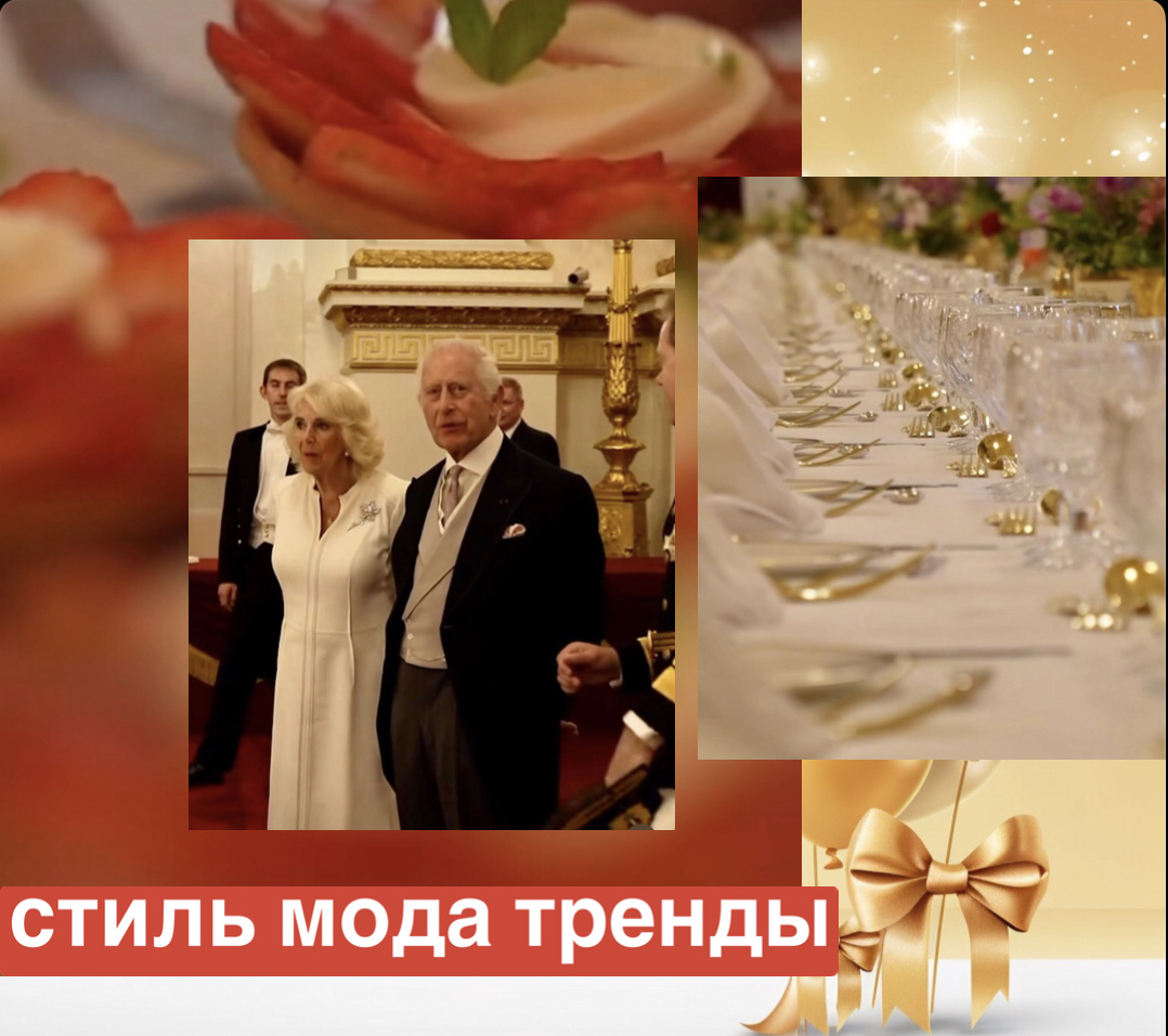 Пока Нарухито и Масако готовятся к вечернему пышному банкету, в Букингемском дворце все вверх дном! Последние часы перед знаменитым Золотым приемом. Еще Елизавета Вторая цинично замечала, что эти золотые тарелки будут гости вспоминать всю жизнь... Ну и правда, золотые приборы. Написанные золотом карточки. Король. Император Японии. На мой взгляд, стулья стоят уж слишком плотненько ( вспомнилась Серена Уильямс вчера и другие американки, но тут миниатюрные японцы, глядишь, и поместятся). Чарльз сегодня в ударе. Он поладил с императором. Гостям очень понравилась японская коллекция в галерее дворца, которую они осмотрели после легкого обеда днем. Лишь Камилла не была особенно в духе. Первое- ее визави тоже в белом. Второе- как королеве приветствовать императрицу? Кто кому реверансы делает? Обошлись без этого. По-сестрински. И братски. Но бантик на шляпке не давал покоя не только мне и королеве . Уильям тоже уж слишком игриво говорил с императрицей. Вернемся к вечернему событи