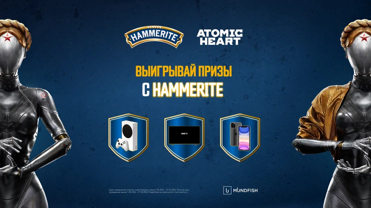Hammerite и видеоигра Atomic Heart объединились для запуска совместной акции! С 1 мая по 31 июля вы можете приобрести продукцию Hammerite, зарегистрировать покупки и выиграть увлекательные призы. Как принять участие: Акция действует на территории всей России. Кэшбек на мобильный телефон от 100 до 3 000 руб. Награду гарантировано получает каждый, кто зарегистрировал на сайте чек от покупки. Сертификат в М.Видео или сертификат в Спортмастер. Этот приз разыгрывается еженедельно среди зарегистрировавшихся участников. Сертификат на покупку любой техники на сумму до 80 000 рублей. Разыгрывается каждый месяц. Atomic Heart — экшен от первого лица с большим количеством возможностей. Игра покорила аудиторию родным визуалом и колоритным саундтреком. Для проекта написали не только оригинальные композиции, но и сделали ремиксы культовых советских песен: «Комарово», «Трава у дома», «Косил Ясь конюшину», «Арлекино» и других. Одним из главных достоинств Atomic Heart является её сеттинг. Утопический СС