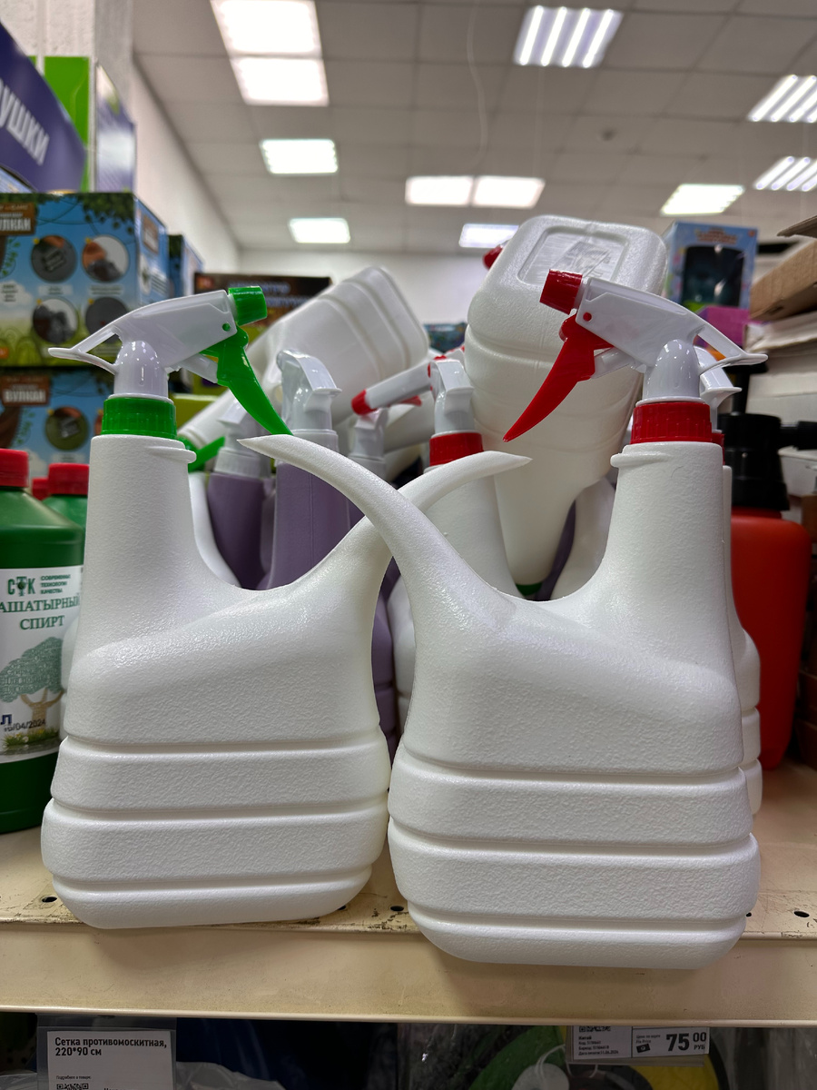 Сразу забираю домой эту лейку, два в одном. Удобно пользоваться, полила и сразу опрыснула растения. Прогресс не стоит на месте, как говорится, даже в таких мелочах. Цена 175 руб. Пластик очень прочный, лейку в руках держать удобно.