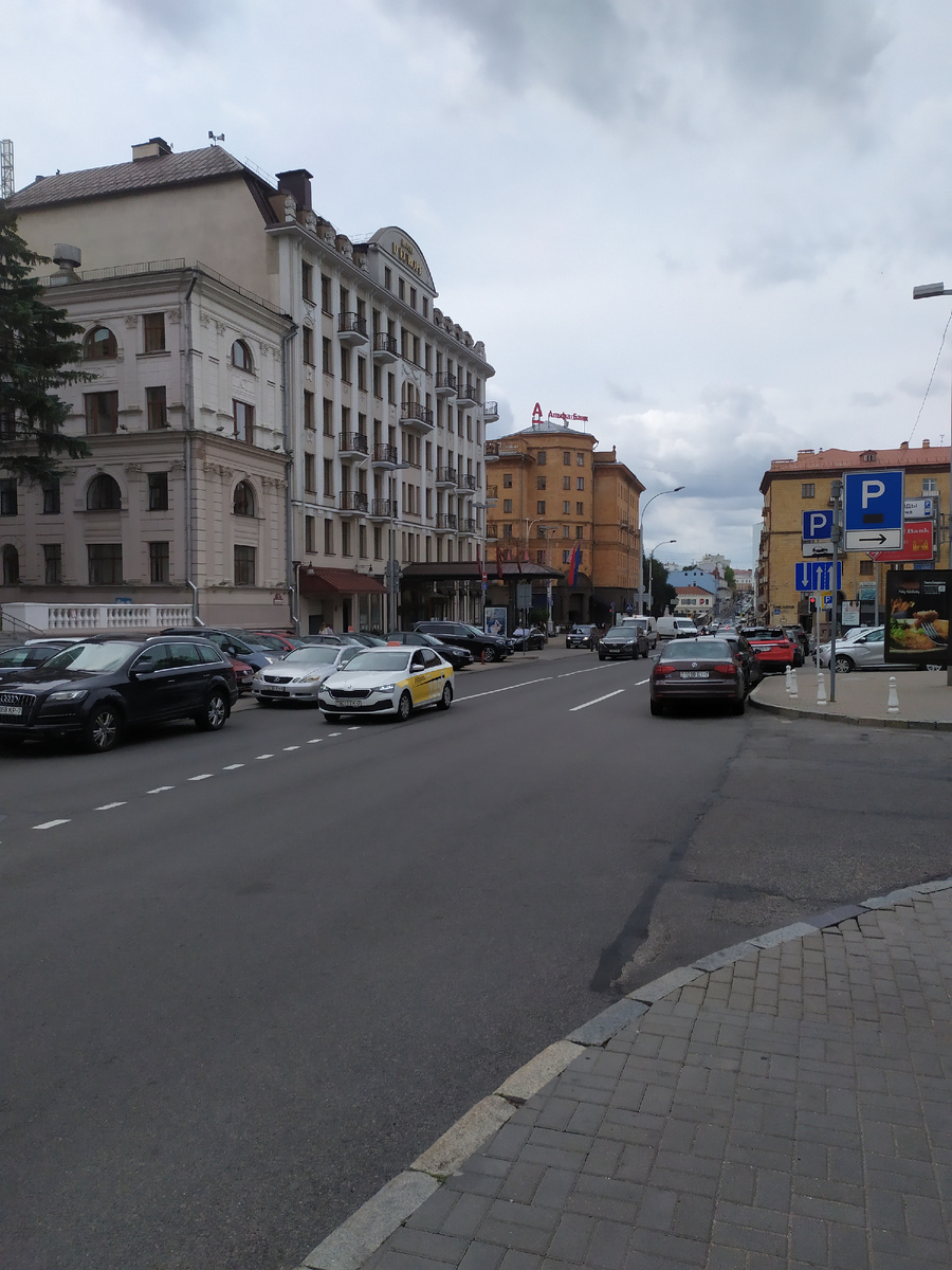 Сегодня отдыхаем, гуляем по центру города. Я вообще очень полюбил Минск. Мне некоторые улицы этого города очень напоминают Москву моего детства, пока их не тронули руки пасечников и оленеводов. Нет иностранных специалистов, зато около метро торгуют квасом из жёлтых бочек. С утра поехали на Комаровский рынок. Доехали до станции Площадь Якуба Коласа, ближайшей до рынка. Цены на сезонные ягоды ниже подмосковных минимум в два раза. Черника лесная - 9.9 рубля за килограмм, взяли полкилограмма на 138,6₽. Клубника по той же цене - 9.9 рубля (277,2₽), взяли килограмм. Клубника не очень вкусная, но вкуснее чем магазинная сейчас у нас. Ждём, когда у нас начнут продавать в плодово-ягодном питомнике, наверное, когда вернёмся уже поспеет. Ещё купили килограмм мелкой бульбы за 2 рубля (56₽), захотелось отварить и обжарить с салом. Сала тут море на любой вкус. Средняя цена 30 рублей (840₽) за килограмм, что как-то не очень дёшево показалось. Весной в Витебске покупали значительно дешевле. З