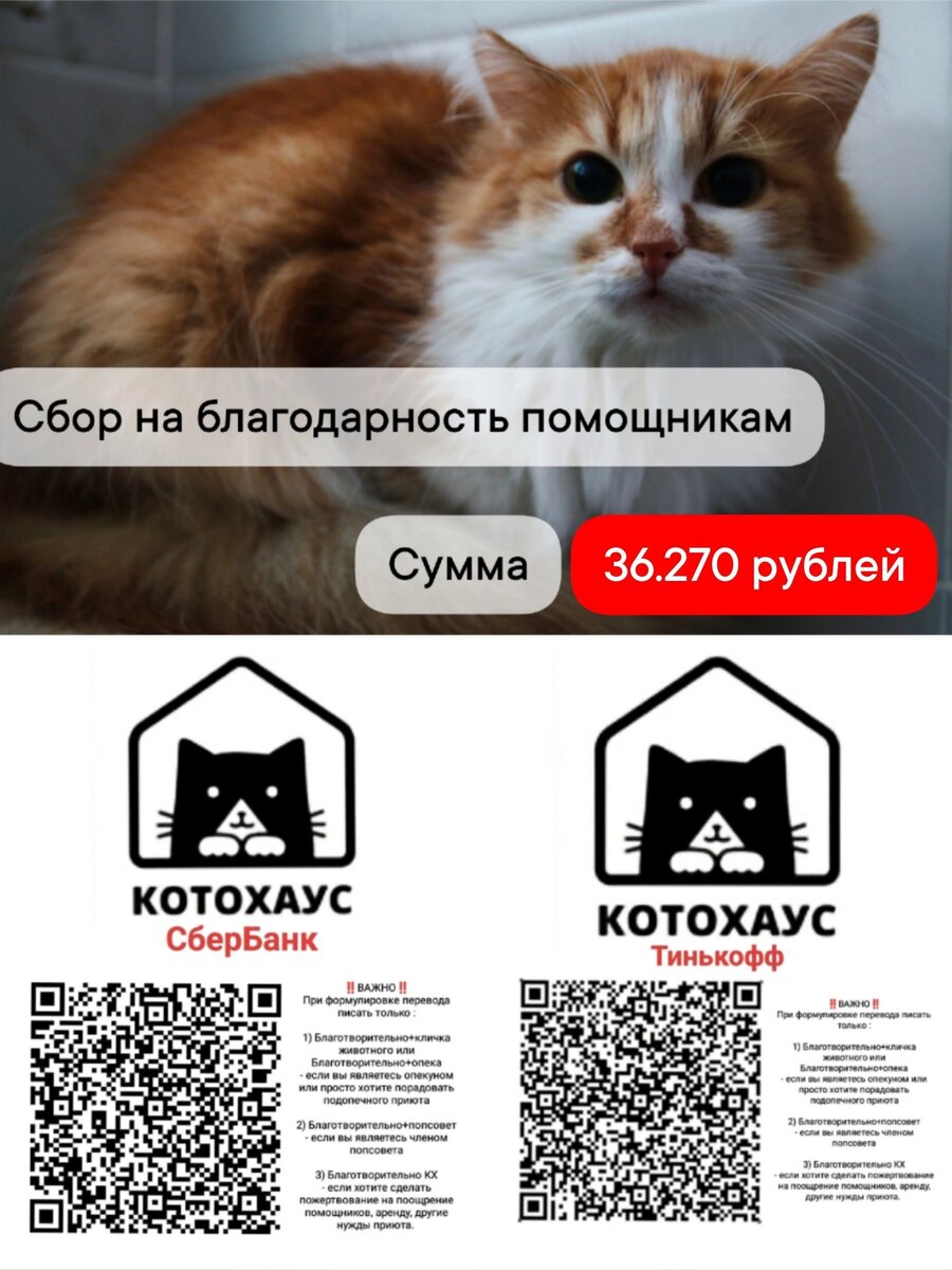 ❗Сбор на поощрение помощников за чистоту в КотоХаусе.❗ Каждый понедельник мы начинаем новым сбор на благодарность нашим помощникам🥰 К сожалению, за прошлую неделю перешёл долг суммой 10.270 рублей... А это значит, что для поощрения помощников в конце недели КотоХаусу понадобится собрать: 3⃣6⃣.2⃣7⃣0⃣ рублей Нам нужно не подвести наших фей чистоты и поблагодарить их, ведь они много времени проводят в приюте, отдают свои силы и любовь ради комфортной жизни котов и кошек. Такой тяжёлый труд и любовь без границ не должны оставаться не замеченными🥲🙏 Вместе с вами мы справимся❤🔥 Просим вас о любой помощи: 🔸пожертвования 🔸 репосты 🔸 участие в опекунском и попечительском совете на постоянной основе Актуальна любая помощь по вашим силам❗ Каждое пожертвование важно, будь это 10, 50, 100 рублей! Совместными усилиями мы сможем справиться, ведь нас в группе 4.000+ Человек❣ Пожалуйста, ПОДЕЛИТЕСЬ ЗАПИСЬЮ с друзьями, коллегами, всеми, кто не пройдет мимо😿 ‼ВАЖНО‼ 💠 По возможности поже