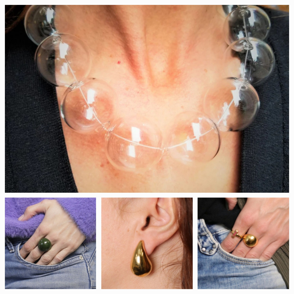 Cкульптурные украшения, массивные серьги-обручи, крупные (если не сказать гигантские) браслеты, цепочки уже давно пользуются популярностью. Но в этом летнем сезоне они становятся как никогда актуальным. В подборке - украшения, которые дополнят ультрамодный гардероб этим летом. Эти "пузырчатые" украшения обладают 3D-эффектом. В них есть максимализм, они элегантны и бросаются в глаза. Прекрасное решение, чтобы превратить простой наряд в особенный. Баббл-украшения можно носить на шее или на запястье. Также очень эффектно смотрятся кольца или серьги размера XXL в форме капли. Мода — это вечное возвращение чего-то нового. 2024-й не стал исключением из правил! В этом году 90-е - один из главных трендов, в том числе в качестве бижутерии. И культовое украшение того десятилетия – чокер - снова в моде! Все варианты этого колье сегодня супер актуальны: в стиле барокко, панк или готика; они также могут быть более нежными, очень женственными, украшенные жемчугом или кружевом (летний вариант - р