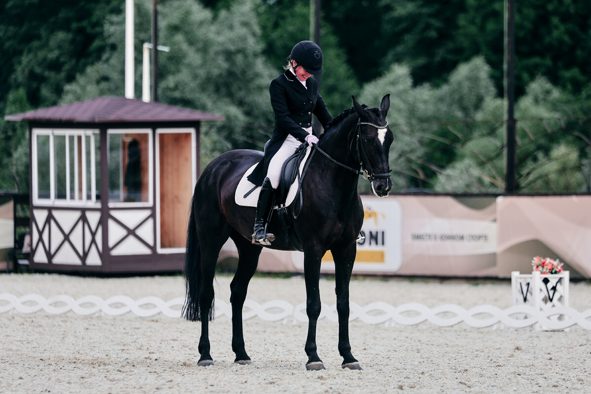 И скромные, но достойные 64.3%. Птица была весёлая, целеустремлённая, пугалась следов на плацу и сторонилась будочек. Я чуть было не заехала до колокольчика. Иначе меня бы развернули! Сколько раз вижу как судья когда всадники заезжают без колокольчика! Думаю когда сижу в будке что ну как так можно забыть про колокольчик! И сама в сосредоточенности чуть не сделала так же. Меня остановил манежный рабочий. Который должен открывать и закрвать створки. Удивительно как ему ещё не всё равно! Немного отходила от стенки на плечах внутрь и не показала рысь как дома но галоп улучшился! И на приниманиях появилось сгибание. Раньше нам писали, что это уступка шенкелю и ставили 5.5. Все же вес на задние ноги берет плоховато. И мало задними ногами пользуется. Оттого трудный контакт, она пытается компенсировать свое равновесие за счёт руки. Но уже гораздо меньше. Остановки даются плоховато. Мы их почти не работали дома. Нужно уметь сокращать галоп на прямой линии почти до пируэтного и спокойно оста