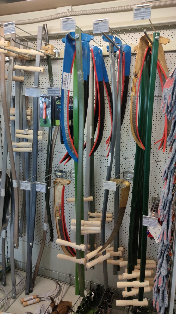 Во-первых, ее нельзя просто внять и использовать по назначению. Она не отбита, не заточена. Более эффективно рубить траву простой хворостиной, чем этой косой 'из коробки'. Во-вторых, способ крепления на один болт гарантирует ее 'разгибание'. Невозможно, абсолютно немыслимо, чтобы инструмент работал под нагрузкой под углом и мог держаться на одной точке. Это понятно абсолютно любому, кроме разработчиков и изготовителей этой поделки. Еще до начала работы я доработал убожество, снабдив еще одним болтом. В третьих, этот барашек раскручивался при косьбе примерно за минуту. Но несмотря на постоянные подкручивания в какой-то момент он улетел в неизвестном направлении. Хорошо болт остался и удалось подобрать гайку по резьбе. Продолжив работу. В итоге коса просто лопнула там, где у нее 'прямой угол'. Хватило её примерно на три сотки травы. Помимо всех прочих неудобств (отвратительные ручки, которые не держатся на своих местах, длина всего 150с - для карликов, но при этом не засунуть ее в ба