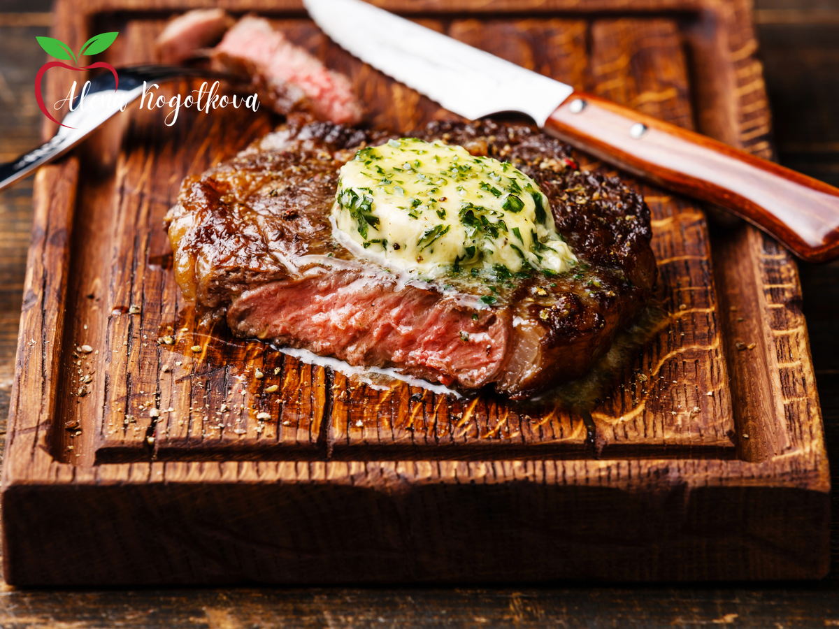Мясные стейки (да, вы не ослышались) буквально засыпают сахаром — опять для карамелизации и той самой аппетитной и вкусной корочки. Да, мясо. Да, сахар. Да, тонна сливочного масла. А бывает, что не масла, а спреда или маргарина.