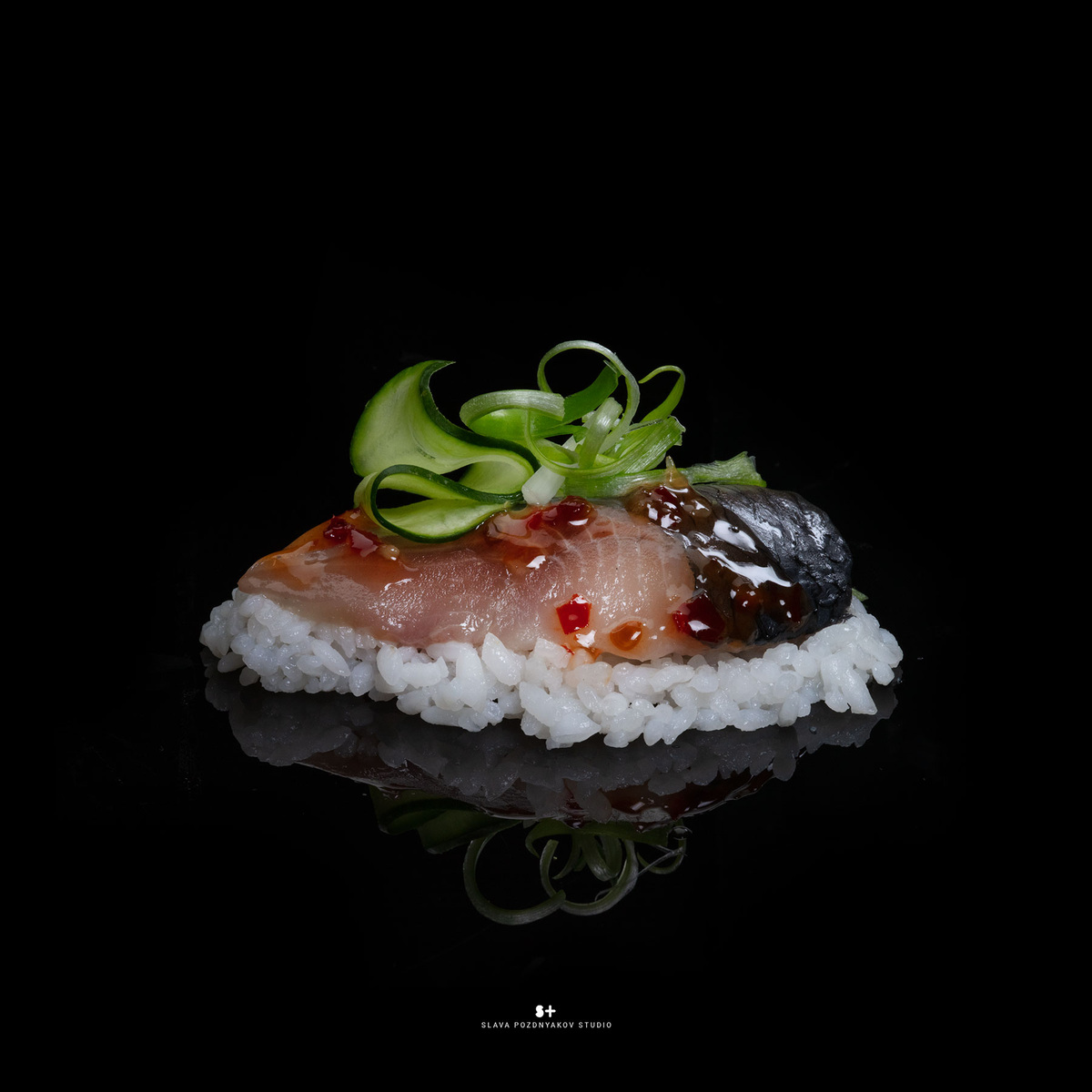 Почему черный фон? Сельдь в атлантическом соусе чили. Фуд-стилист и фотограф Слава Поздняков.