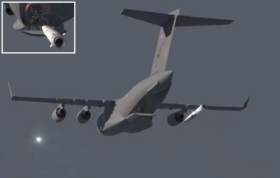 C-17 Globemaster III, оснащенный системой REVOLVER, запускающий несколько гиперзвуковых ракет X-51A. Изображение: Boeing Профильный ресурс Army Recognition сообщает о том, что западный оборонный сектор был "ошеломлён" революционным развитием военной авиации и ракетных технологий, продемонстрированных фирмой Boeing. Речь идёт о новой пусковой установке REVOLVER, которая предназначена для установки в грузовом отсеке военно-транспортного самолёта Boeing C-17 Globemaster III, тем самым превращая его в воздушный ракетоносец. Издание заявляет, что эта система запуска демонстрирует беспрецедентные возможности по развертыванию гиперзвуковых крылатых ракет Boeing X-51A Waverider. Эта современная пусковая установка состоит из двух последовательно установленных барабанов и усовершенствованного электромагнитного катапультного механизма. Система позволяет быстро запускать до 12 гиперзвуковых крылатых ракет Boeing X-51A Waverider. Конструкция пусковой REVOLVER гарантирует, что каждая ракета может бы