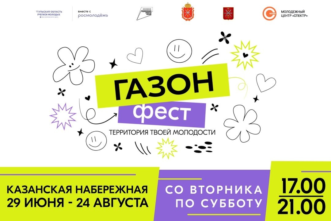 В субботу, 29 июня, проект «ГАЗОН.ФЕСТ» откроется в новом формате как большой фестиваль. Каждую неделю туляков будет ждать новая тематика, а пятницы станут самыми зажигательными днями фестиваля. «ГАЗОН» будет работать со вторник по субботу с 17:00 до 21:00. В этом сезоне на Казанской набережной будут работать несколько зон: Проект реализуется при поддержке Росмолодежи.