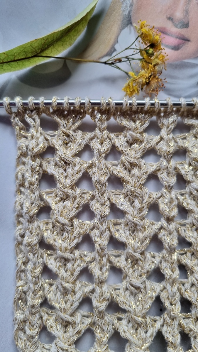 Вяжем сегодня объёмную сеточку спицами. Узор подойдёт для вязания сумок, летних джемперов и туник.