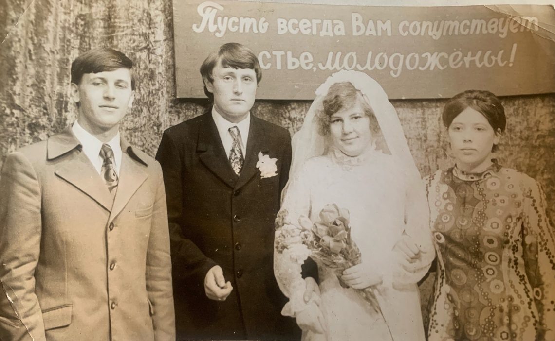 На невесте было красивейшее платье, сшитое руками ее мамы. Материал для него (гипюр с блестящей ниткой) привез Зинаиде старший брат Виктор из Каира, где проходил службу в составе ограниченного контингента наших войск. Это был шикарный подарок!