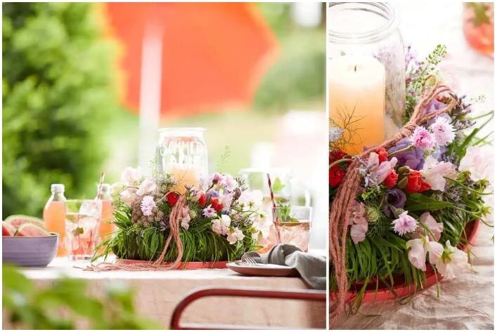 Но обязательно добавьте немного цветов на летний стол. Ведь с цветами любое застолье становится во сто крат уютнее.
