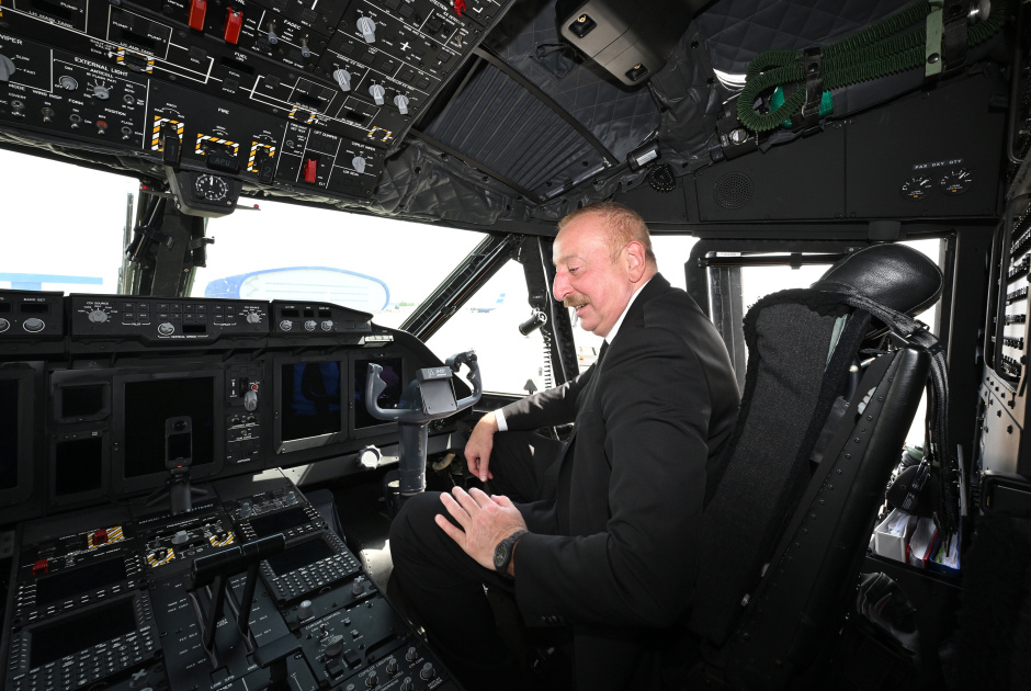 Сегодня в Международном аэропорту Гейдар Алиев президенту Азербайджана Ильхаму Алиеву был представлен военно-транспортный самолет C-27J Spartan производства компании Leonardo (Италия). В мероприятии приняли участие министр обороны Италии Гуидо Крозетто, заместитель министра иностранных дел и международного сотрудничества Италии Эдмондо Чириелли, президент компании Leonardo Стефано Понтекорво. Глава государства осмотрел самолет, побывал в кабине пилотов, сел за штурвал транспортника. Азербайджан подписал с итальянской компанией Leonardo контракт на поставку самолетов C-27J еще летом 2023 года.