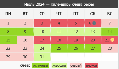 Влияние лунных фаз на клев рыбы в июле 2024 года