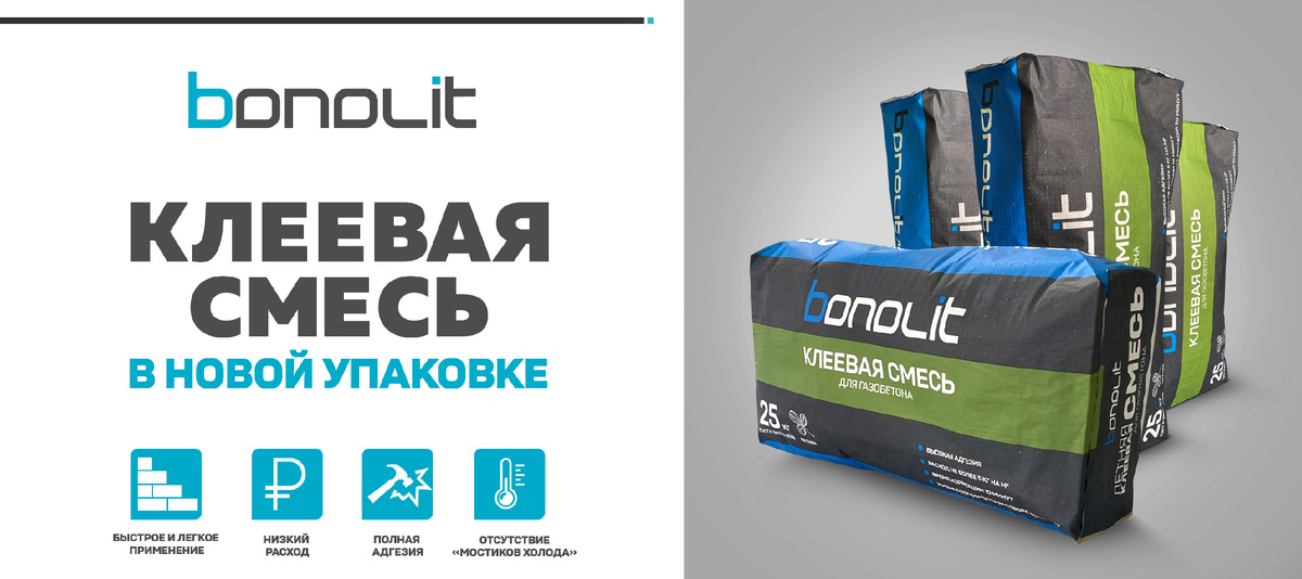 Обновленный логотип и узнаваемая цветовая гамма сочетается с современным и лаконичным позиционированием бренда Bonolit. Визуальные изменения бренда - это отражение нашей новой философии! Вся продукция бренда завоевала доверие аудитории как качественный, безопасный продукт. Применение клеевой смеси Bonolit позволяет делать швы небольшой толщины, что придает конструкциям высокую эстетичность, а также повышает их теплоизоляционные свойства. Клей для газобетонных блоков имеет много преимуществ: Современный клей для газобетона – прекрасная альтернатива традиционным цементным кладочным растворам. Благодаря увеличению скорости возведения конструкций снижается стоимость строительства в целом. Мы постоянно работаем над совершенствованием характеристик, расширением ассортиментного портфеля и предоставлением услуг сервиса на самом высоком уровне. Кстати, совсем скоро мы представим Вам еще один новый продукт! Подписывайтесь на наши официальные страницы в социальных сетях и следите за новост