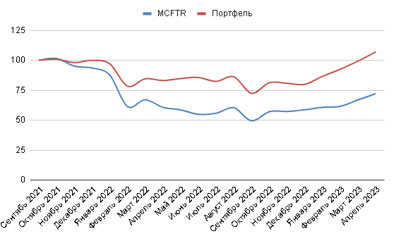 В своём ТГ-канале «На пути к 30 миллионам!» я пишу о том, как с 0 достигаю цели в 30 миллионов рублей с помощью бизнеса и инвестиций в акции, облигации, криптовалюты, краудлендинг. В октябре 2021 года на фондовый рынок достиг своих максимумов, а потом начал резкое падение. Мне было интересно посмотреть как мой портфель покажет себя на этом падении. Я решил отметить для себя две важные точки: какая будет доходность у моего портфеля, когда индекс выйдет из убытка и какая будет доходность индекса, когда мой портфель выйдет из убытка. Мой портфель в ноль вышел первым. По итогам апреля 2023 года я заработал свой 14 миллион и мой портфель вышел из минуса. Индекс был в убытке на 29%, а я в плюсе на 6%. Я хотел написать этот пост ещё по итогам апреля 2024. Как раз тогда индекс с учётом дивидендов вышел в ноль. На тот момент по моему портфелю прибыль уже была 40%. Это 14,4% годовых доходности. Самая большая просадка по моему портфелю была 28%, индекс же падал на 51%. Что же помогло устоять моем