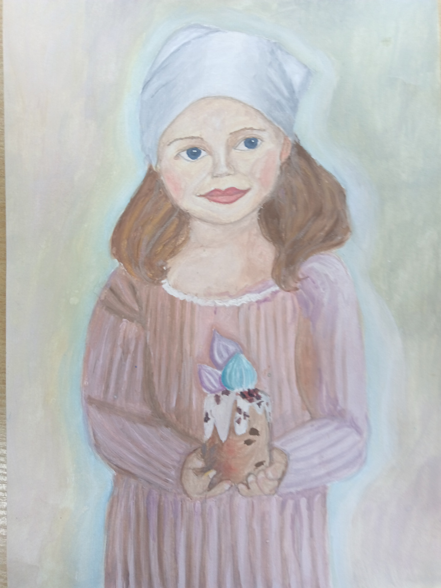 Девочка весь год ждала Пасхи, чтобы пойти и осветить свой куличик. И вот этот день настал.