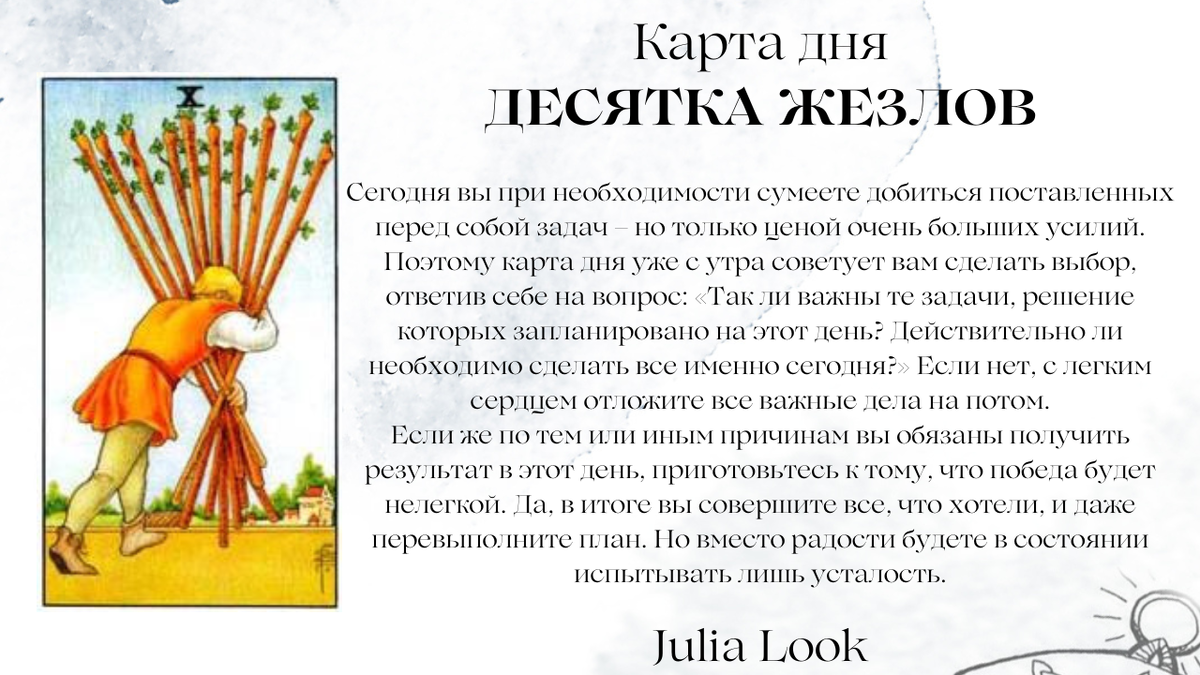 🧧 ТАРО КАРТА ДНЯ - ДЕСЯТКА ЖЕЗЛОВ прямая