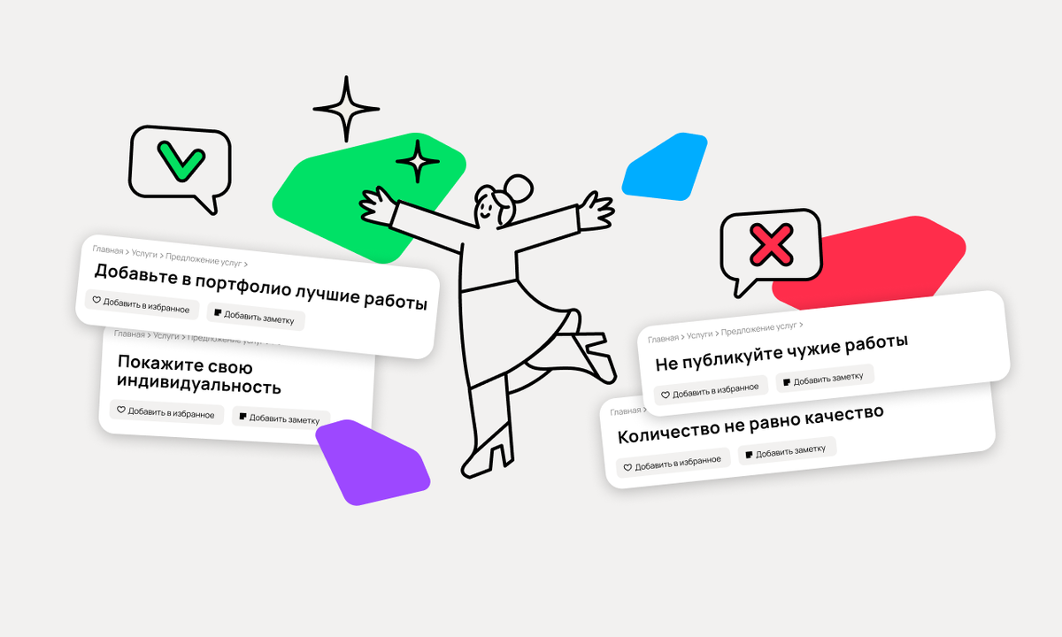 Фотографии — первое, на что смотрят потенциальные клиенты. Чтобы находить заказчиков, стоит внимательно относиться к выбору изображений. Расскажем, как сделать фото для профиля и объявлений на Авито Услугах. Подойдут примеры работ или снимки в формате «До и после». Клиенты сразу увидят, как может выглядеть результат, и получат больше мотивации для заказа услуги. Если на фото изображён другой человек, получите его согласие на публикацию. Чтобы выделиться среди других исполнителей, добавьте портретное фото с инфографикой. Если у вас узнаваемый бренд, загрузите снимки интерьера, которые отражают ваш фирменный стиль. Лучше использовать только качественные фотографии. Выберите снимки без засвеченных или затемнённых областей, лишних надписей и вещей на фоне. Горизонтальные снимки не будут обрезаны при размещении. Старайтесь сделать фото в высоком разрешении — желательно не менее 1 000 пикселей в ширину. Загружайте только свои фотографии — не стоит публиковать фото из чужих объявлений, просто