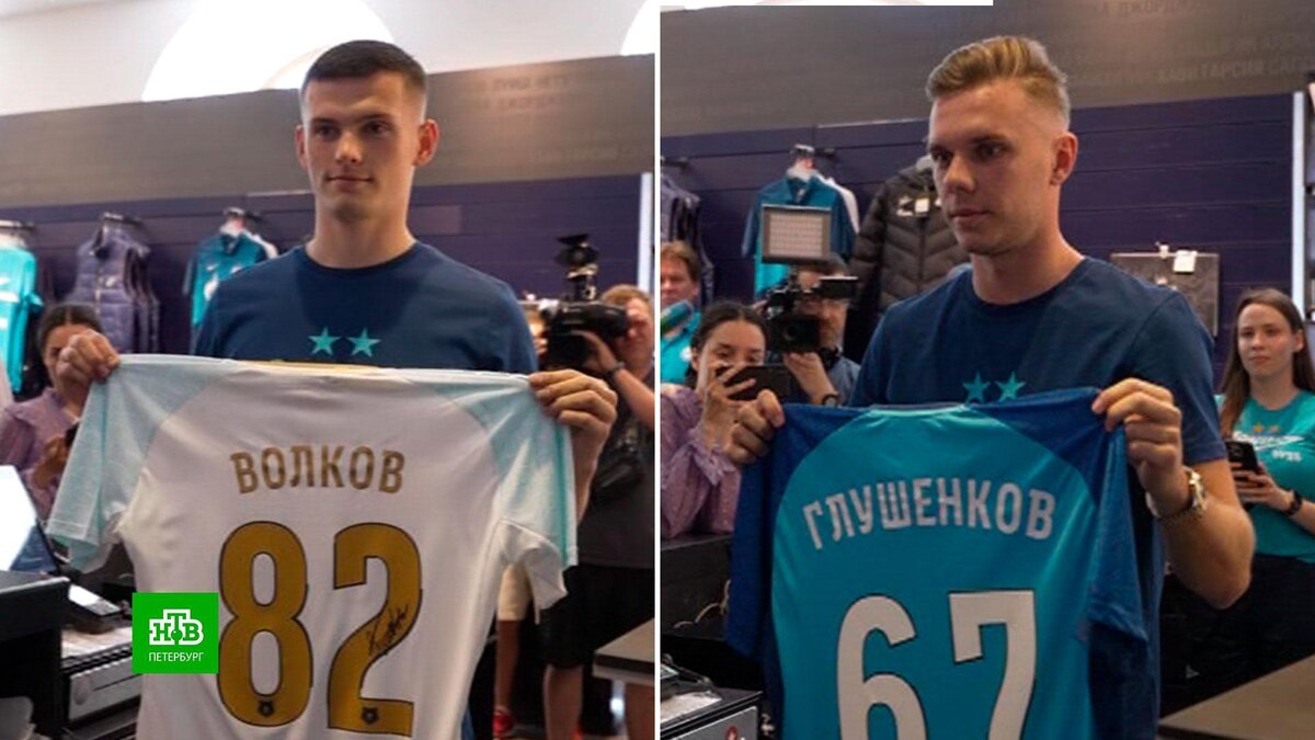 [ Смотреть видео на сайте НТВ ] Петербургский «Зенит» официально представил четырех новых футболистов команды. Презентация прошла на Невском проспекте в магазине фирменной атрибутики. По традиции каждый из игроков нанес свою фамилию и номер на футболку «Зенита». Первым к прессу подошел Максим Глушенков. Полузащитник выбрал номер 67. Кроме него среди новичков команды воспитанник «Краснодара» Сергей Волков, экс-футболист «Крыльев Советов» Юрий Горшков и бывший голкипер «Балтики» Евгений Латышонок. [ Смотреть видео на сайте НТВ ]