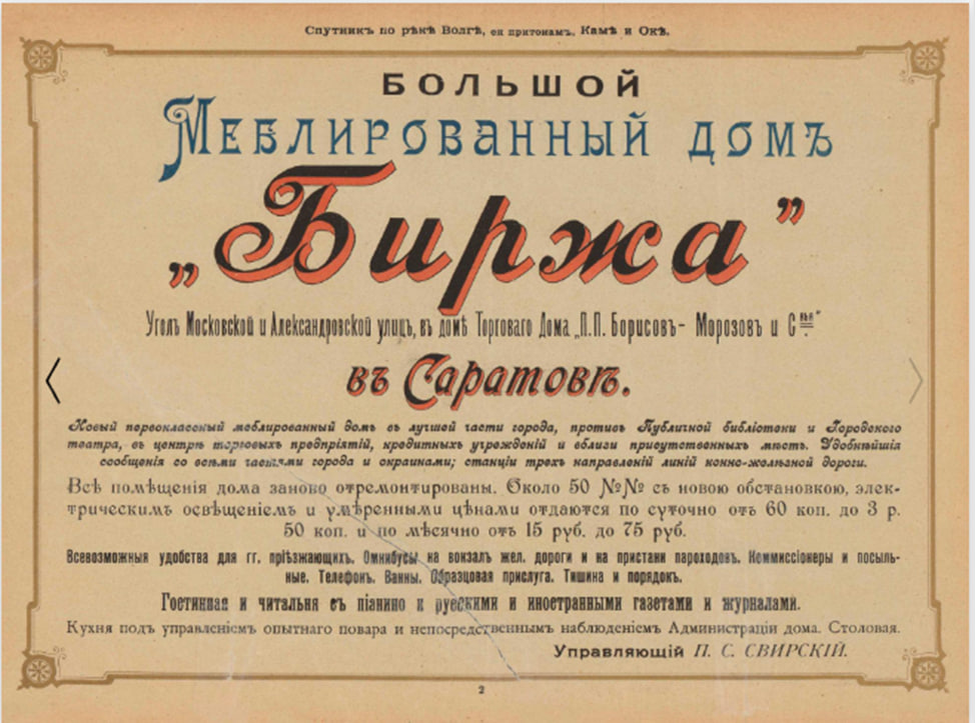 Здание Биржи 1890 года. идею ее строительства подал купец Павел Иванович Кокуев, а первые собрания проводились еще в 1870 году.5 апреля 1880 г. состоялось первое собрание, и был избран Биржевой комитет. 14 февраля 1882 г. в арендованном помещении Пассажа открылась биржа. В 1890 г. по проекту архитектора Ф. И. Шустера для нее было построено здание на ул. Никольской (ныне ул. Радищева). Здание перестраивал Салько. Меблированный дом БИРЖА - это здание другое.