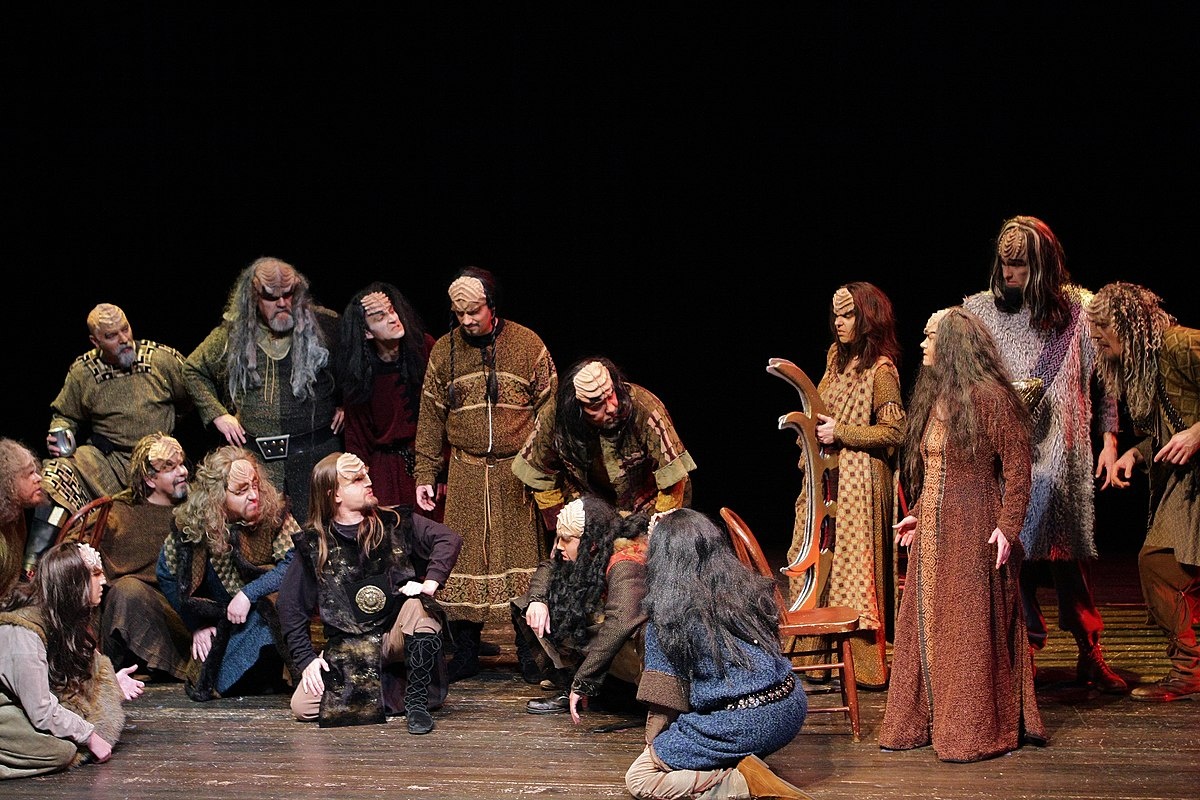 Из наслаждений жизни одной любви музы́ка уступает. Но и любовь – мелодия…» (Александр Пушкин) Иф ван Брин. У Опера в 3 действиях Первая опера на клингонском языке, объявленная «первой подлинной клингонской оперой на Земле». Написана на либретто Киса Лигтелина и Марка Окранда под художественным руководством Флориса Шёнфельда, основанном на эпической легенде о «Кахлессе Незабываемом», мессианской фигуре в истории вымышленных клингтонов. Премьера оперы в Гааге 10 сентября 2010 года прошла с успехом, и с тех пор опера несколько раз исполнялась. Клингонский язык придуман актером Джеймсом Духаном, сыгравшим Монтгомери Скотта в телесериале «Звездный путь». Он создал несколько резко звучащих слов для клингонских персонажей. Продюсеры наняли лингвиста Марка Окранда для сиквелов, чтобы превратить его в полноценный язык со своим уникальным словарным запасом, грамматикой и идиомами. Окранд разработал язык так, чтобы он звучал «инопланетно», используя ряд типологически необычных особенностей. По м