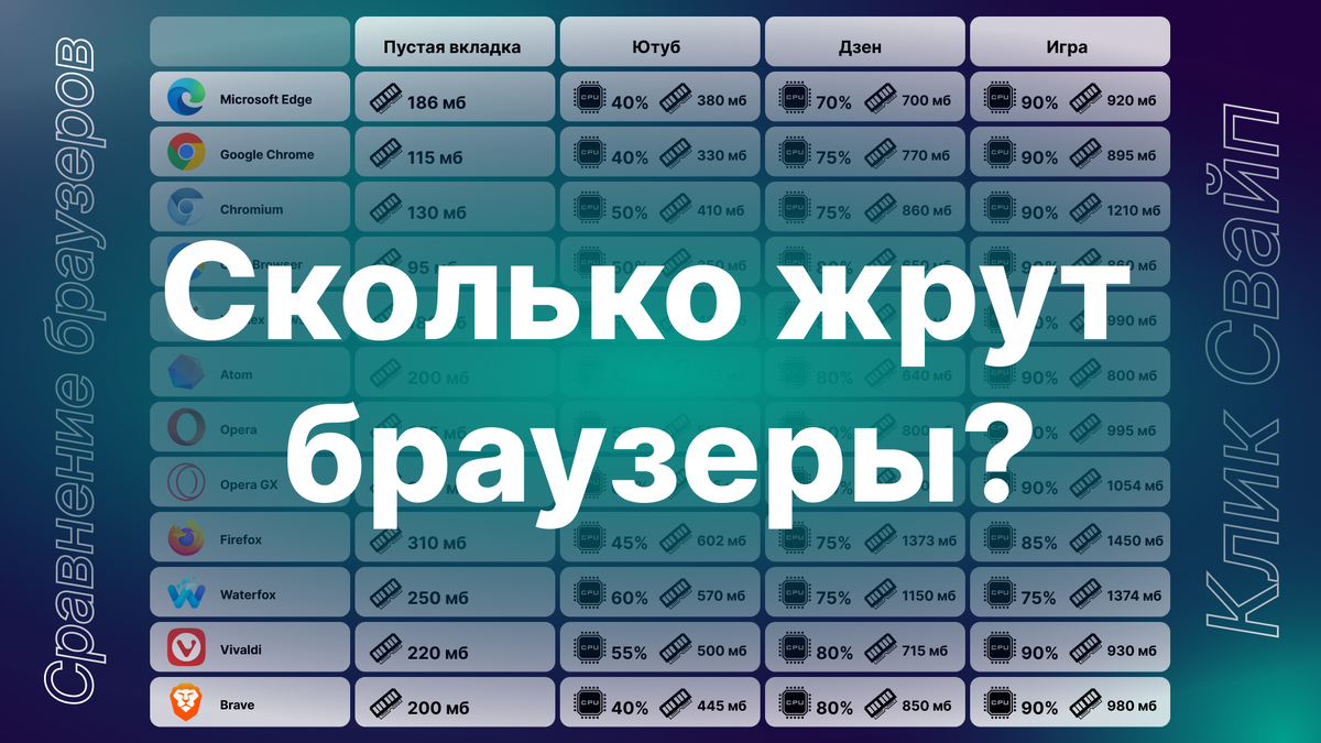 По другому становится вопрос если вы желаете подобрать для себя самый удобный браузер исходя из конкретно своих потребностей и сценариев работы. Об уникальных особенностях и функциях браузеров мы поговорим в другой раз, поэтому жмякните подписку чтобы не пропустить статейки. А в этой статье мы с вами сравним все популярные браузеры известные автору на предмет их прожорливости ресурсов .
