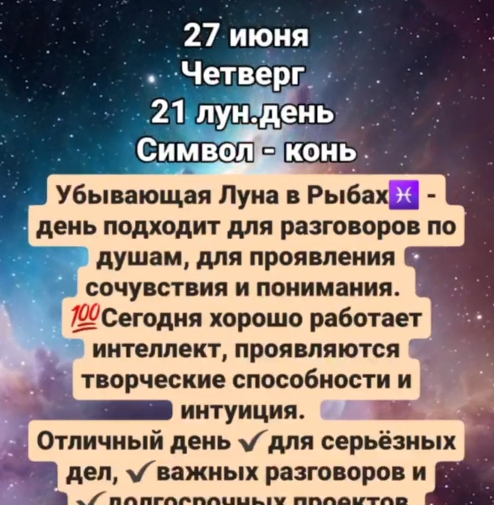Убывающая Луна в Рыбах♓️ - день подходит для разговоров по душам, для проявления сочувствия и понимания. 💯Сегодня хорошо работает интеллект, проявляются творческие способности и интуиция. Отличный день ✔️для серьёзных дел, ✔️важных разговоров и ✔️долгосрочных проектов. 🌛21 лун.день- период движения вперёд. День справедливости, храбрости и бесстрашия. #гороскоп #астрология #луна #астрологияонлайн #астропрогноз #овен #телец #близнецы #рак #лев #дева #весы #скорпион #стрелец #козерог #водолей #рыбы #затмениесолнца #солнечноезатмение #затмение #новолуниевблизнецах #загадываемжелания #загадайжелание #желание #Венера #мечтысбываются