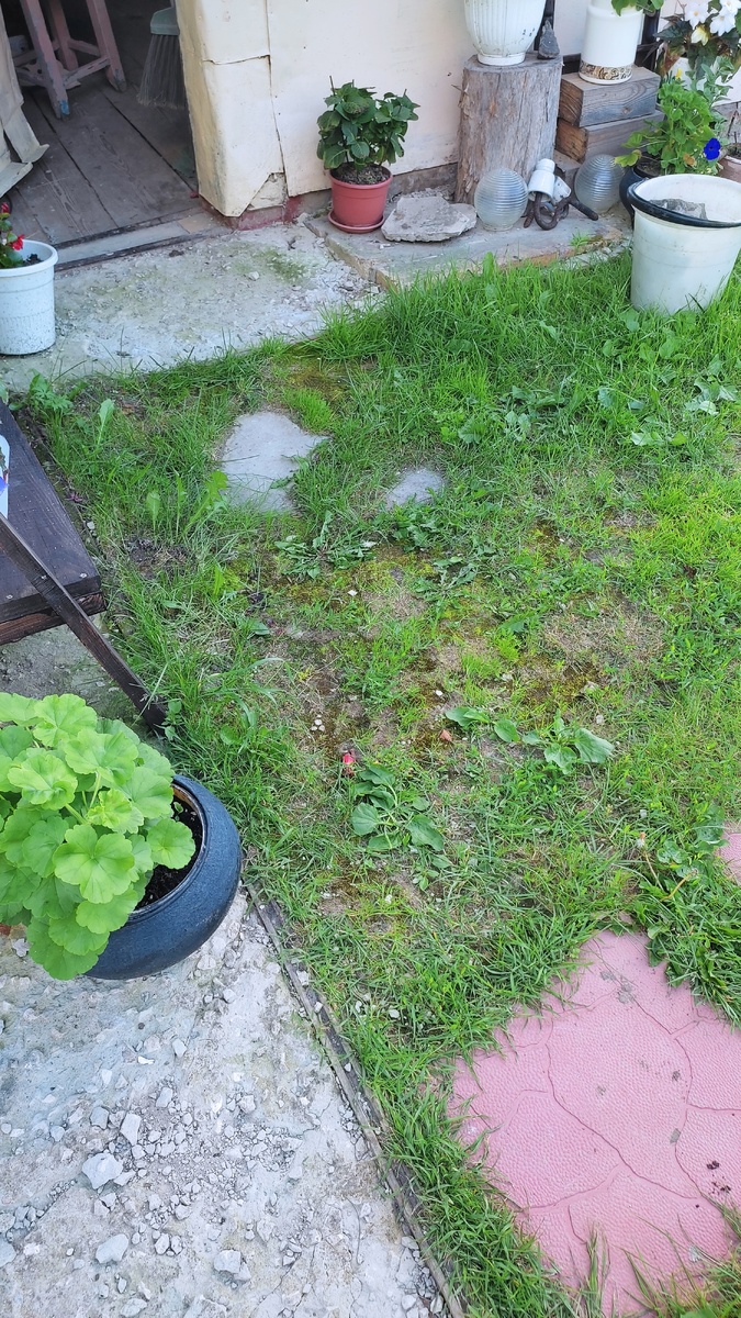 Добрый день всем! Есть у меня угол на участке, между домом и двором. Там очень плохо растёт трава, тень и сырость. И мастерю я здесь всегда, опилки в траву забиваются. И есть у меня старая отмостка. Со временем развалилась и дом обшивали убирали, чтоб ровно сделать. Вдоль этой стены будет отсыпка щебнем, поэтому бетон нужно убрать. И решила я эти куски в дело пустить. Я же люблю давать новую жизнь старым вещам😊.Сняла верхний слой дёрна, разровняла, выбрала все камушки и разложила плиты. Щели засыпала землёй. Получилось по типу плитняка. Всё пролила водой, в образовавшиеся щели подсыпала песка. А потом и дождь пошёл, всё хорошо уляжется. Высохнет, подмету. Предварительный результат нравится, скорее всего доделаю весь угол. И не будут мне мозолить глаза пучки травы среди опилок, подмел и всё. Кто-то может скажет, что проще купить 10 плиток и положить. Проще, но мы лёгких путей не ищем😅, да и интереснее так. Всем мира и добра!