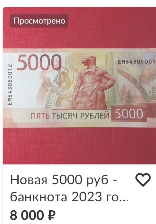 Вот похоже и прошёл цикл первичного введения в обращение новых купюр номиналом 5000 рублей образца 2023 года. Они стали постепенно появляться в различных интернет магазинах и на площадках бесплатных объявлений. Нужно сразу отметить, что по-сравнению со сторублевой банкнотой перекупщики и продавцы ведут себя в общем и целом адекватно и можно даже сказать по-человечески. Бегло пробежавшись по рынку я не увидел адских цен, которые были присущи струблевкам, которые выставлялись в некоторых местах по 90 000 за банкноту. Хотя, возможно, я просто пропустил, этот момент расцвета тех, кто хочет урвать свои деньги несмотря ни на что. На самом деле рынок устаканится в районе 8000-9000 рублей за одну купюру. Нужно сказать, что это очень адекватна оценка, которая не превышает номинальную стоимость даже в 2 раза. Глупо было ожидать увидеть эту купюру за 5500 на рынке, хотя это рано или поздно случится. Поэтому, считаю, что рынок в этот раз оказался крайне адекватным. Причем, нужно отметить, что уч