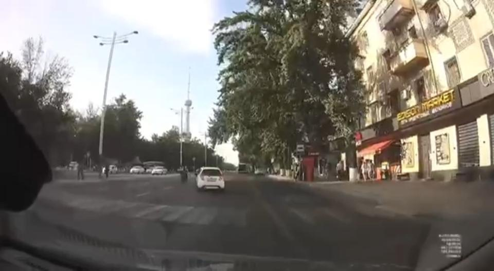 Небанальное ДТП. В Ташкенте водитель Spark догнал скутер и сбил его
