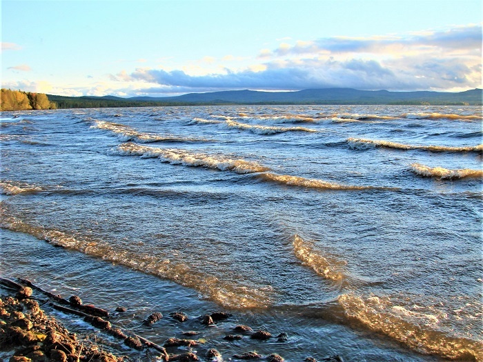 Когда смотришь в штиль на берег Черноисточинского пруда, когда полная тишина, и нет ветра, акватория гладкая, гладкая, и не видно ни малейшего волнения. Поверхность пруда настолько чистая и гладкая, что на воде отражаются облака. Ветровые волны образуются на поверхности воды под действием ветра. Ветровые волны являются гравитационными, так как ветер, это сила, которая при воздействии на водную поверхность выводит жидкость из состояния равновесия, а сила тяжести заставляет ее возвращаться в прежнее состояние.
