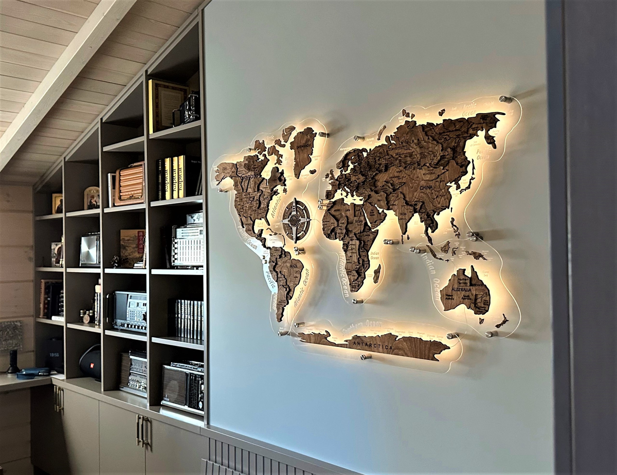 Этим мы и занимаемся. Но создаем не просто карты, а стилизованные деревянные украшения для домашнего и офисного интерьера. Наш бренд создали в 2018 году Алексей Зинкевич и Владислав Данилов. Основатели преследовали главную цель: создать карты из дерева премиального класса, которые можно с удовольствием повесить на стену у себя дома или подарить уважаемому человеку. Сначала в «Creed Maps» занимались изготовлением только интерьерных карт мира из дерева, без подсветки и подложки. Мы продавали карты на иностранной площадке в по всей Европе и даже США. Постепенно география продаж расширилась, и с 2019 года мы начали активные продажи и на территории России, которые стали приоритетными для нашей фабрики.