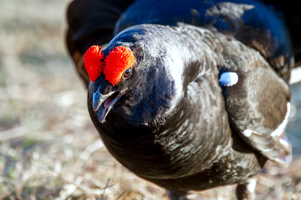 Глухарь – самый крупный представитель семейства. Взрослые самцы весят до 5-6 кг. Самки значительно меньше, их вес – около 2 кг. Половой диморфизм проявляется не только в размерах, но и в окраске: если у глухарок, как и у самок тетерева, оперение пестрое, рыже-черно-беловатое, то у самцов преобладают темно-серые тона и белые пятна. Характерным признаком куриных являются неоперенные участки над глазами – «брови», которые в период размножения становятся ярко-алыми.