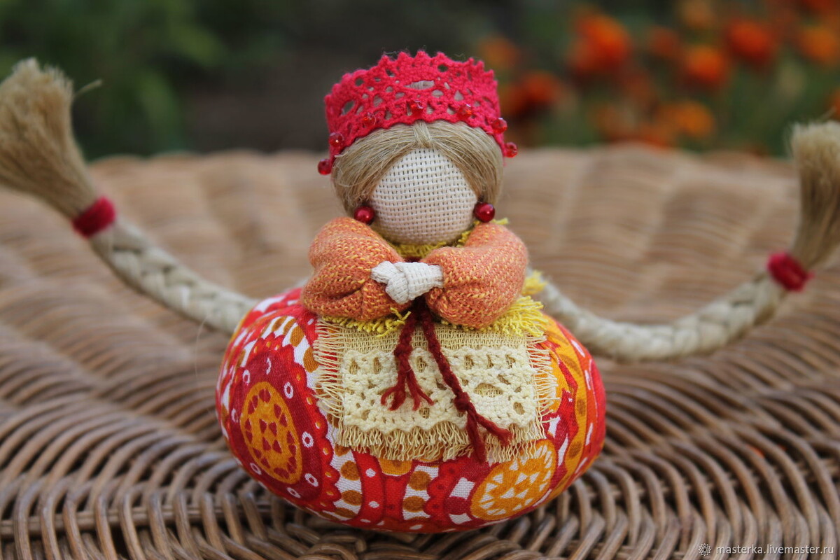 Славянские куклы: история, значение и виды Славянские куклы — это древние игрушки, которые играли важную роль в жизни людей. Они делились на три типа: игровые, обрядовые и куклы-обереги. Куклы-обереги изготавливались из разных материалов, таких как дерево, ткань, солома и глина. Они имели разные формы и функции. Например, кукла-оберег Лиходейка изготавливалась из двух полос ткани и вешалась на стену для защиты от болезней. Кукла Лихоманка была красивой и нарядной, её использовали для изгнания болезней из дома. В славянских семьях также изготавливали кукол-оберегов здоровья, называемых Кубышка-травница и Травница-защитница. Их делали из льняной или хлопковой ткани и ваты, а в туловище вкладывали лекарственные травы. Кроме того, существовали куклы-обереги для привлечения удачи, любви и богатства. Например, кукла Крупеничка изготавливалась из зерна нового урожая и использовалась для сохранения благополучия семьи. С давних пор славянская женщина, выходя в поле на работу, брала с собой дете