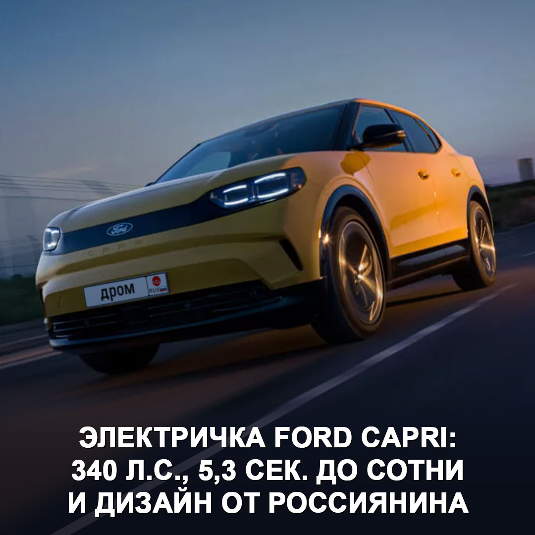 Кстати, дизайнер экстерьера — выпускник Московского автомеханического института (МАМИ) 😎 Новинка построена на платформе Volkswagen ID.5. Силовые установки две: → 286 л.с., задний привод, 6,4 сек. до сотни, запас хода — 627 км. → 340 л.с., 4WD, 5,3 сек. до сотни, на одном заряде — 592 км. → Максималка — 180 км/ч. → Габариты — 4,63 х 1,87 х 1,63 м, багажник — 567 л. Среди оснащения — раздельный климат, сиденья с подогревом и функцией массажа, музыка B&O с 10 динамиками и сабвуфером, LED-оптика, камеры по кругу, проекция, колёсные диски 21”. Оригинальный Ford Capri выпускался в кузове купе, электрический — это кросс-лифтбек с многочисленными отсылками к предку. Например, классическими моделями вдохновлены блок-фары и чёрная панель между ними, закруглённая оконечность оконной линии и задние фонари. Внешку автомобиля разработал Андрей Конопатов, который уже несколько лет трудится в Ford Motor штатным дизайнером. Цена Capri в Европе стартует примерно от 5 000 000 ₽, продажи — в ближайшие м