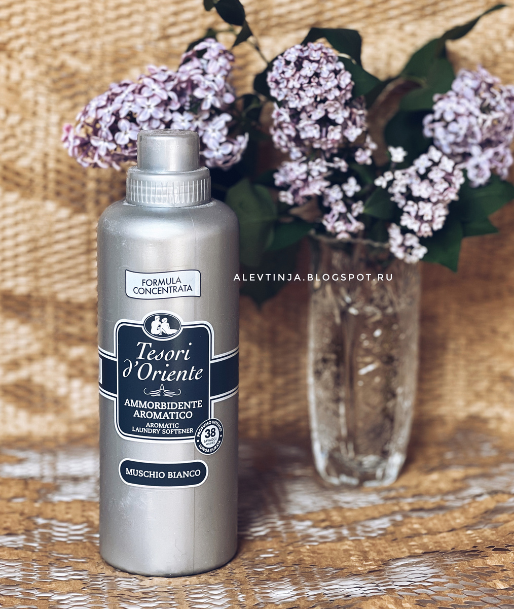 Всем привет! Кондиционеры для белья итальянского бренда Tesori d’Oriente - моя любовь. Сегодня расскажу о втором опробованном варианте с ароматом "Белый мускус". Заказать можно: - в Золотом яблоке - в ЛЭтуаль - на Мегамаркете Тот случай, когда я закрываю глаза на составы из-за потрясающих ароматов. Кстати, производитель нам обещает, что эти самые ароматы созданы на основе натуральных масел. Если это действительно так, что ж отлично! Упакован продукт в пластиковую бутылку с крышкой-дозатором. Оформление лаконичное, стильное. Кондиционер в виде жидкого молочка. На полноценную стирку вполне достаточно одной крышечки. А если вещей немного, то и половинкой можно обойтись. Средство достаточно концентрированное. Бельё мягкое, не электризуется, легко отпаривается и гладится. Перейдём к главному - к аромату. Мою слабость к белому мускусу вы знаете. Если где-то в какой-то линейке он присутствует, то стопроцентно будет и у меня тоже. Белый мускус у разных проиводителей пахнет немного п