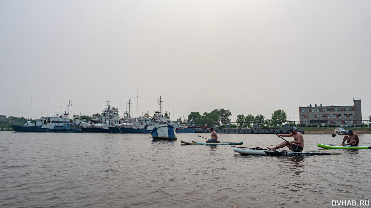 При сплаве на сапе по Амуру можно прокатиться в затон Заячьего полуострова, что на Базе КАФ. Главное вовремя повернуть, чтобы течением не унесло дальше по реке. Вода в нем несколько теплее, можно искупаться. Здесь настоящее раздолье для водных мотоциклов, моторных лодок. Их тут много, если вы на сапе, то надо быть внимательнее, чтобы не оказаться на их пути. Там же стоят катера береговой охраны, баржи - можно сфотографироваться на их фоне. Но близко подплывать не надо. Пляжи находятся по обеим сторонам затона. DVHAB напоминает о необходимости соблюдений требований безопасности у воды и при катании на сапах. Напомним, какие реки подходят для сплавов на сапах, вы можете узнать из подборки DVHAB. Для популярного вида водного отдыха существует несколько проверенных маршрутов по рекам Хабаровского края и Еврейской автономии. Фото Германа Бардюкова