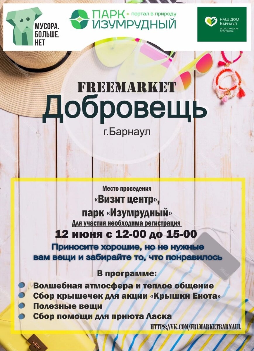 Подобные мероприятия еще называют свопами или вещеворотом. Но у нас в городе прижилось вот такое название. Традиционный фримаркет проводится у нас в Барнауле раз в сезон. Организует его местное подразделение движения "Мусора больше нет".