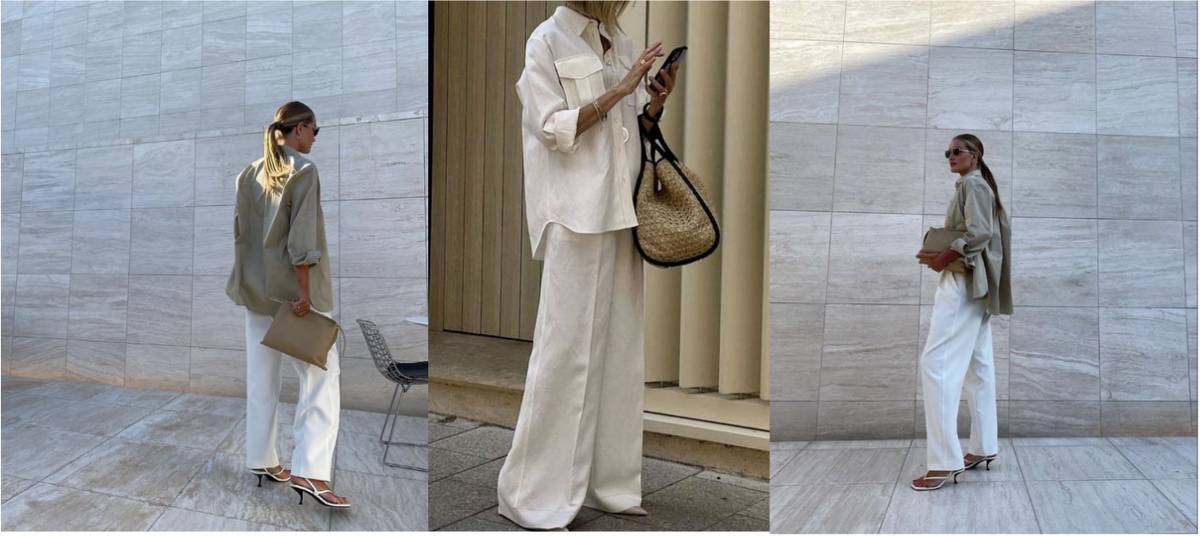 Минимализм — то самое направление, которое никогда не выйдет из моды. Эта история не только о простоте форм, чистоте цвета, комфорте и абсолютной элегантности и уместности. Это не просто стиль, а философия даже. Отказ от перепотребления, инвестиция в каждую вещь, обращение к себе и отсутствие необходимости кому-то что-то доказывать — все это лежит в ее основе. Для тех, кому эта философия близка, подготовили мини-шпаргалку по летним образам. Отдаем предпочтение монохромным опциям изо льна, муслина или жатого шелка. Для “остроты” такое сочетание можно дополнить лодочками или слингбэками, актуальной сумкой-мешком и солнцезащитными очками. Просто, лаконично и чисто. Силуэтный топ и широкие брюки создают контраст объемов, комплементарный любой фигуре. Здесь можно поиграть с сочетанием цветов. Все очень легко: берем 3 нейтральных, но интересных оттенка, и миксуем их. Монохромная же комбинация красиво дополняется контрастным ремнем или сумкой. Мастхэв для особенно жарких дней. Отдаем предпо