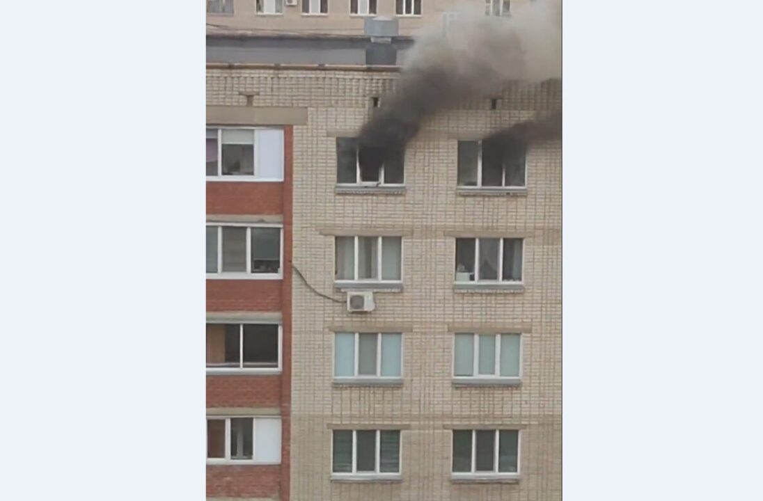 Возгорание происходит на пятом этаже. Из окна вырываются черные клубы дыма. На место стянулись экстренные службы. Подробности произошедшего возгорания будут известны позже.