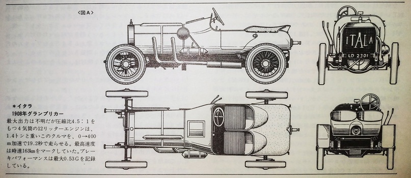 Около 70 лет назад, в начале 1900-х годов, мир сотрясали новости об успешном первом полете братьев Райт. Наконец-то начали проявляться практические результаты изучения аэродинамики, потока и силы воздуха. Однако, когда речь идет об автомобилях, которые, как известно, ездят по земле, к сожалению, трудно сказать, что их внешний вид тогда имел какое-то отношение к аэродинамике. Например, рисунок А. Это «Итала Гран-при» Италии 1908 года. Даже при таком экстерьере, который никак не скрывает интерьер, максимальная скорость составляла 160 км/ч.