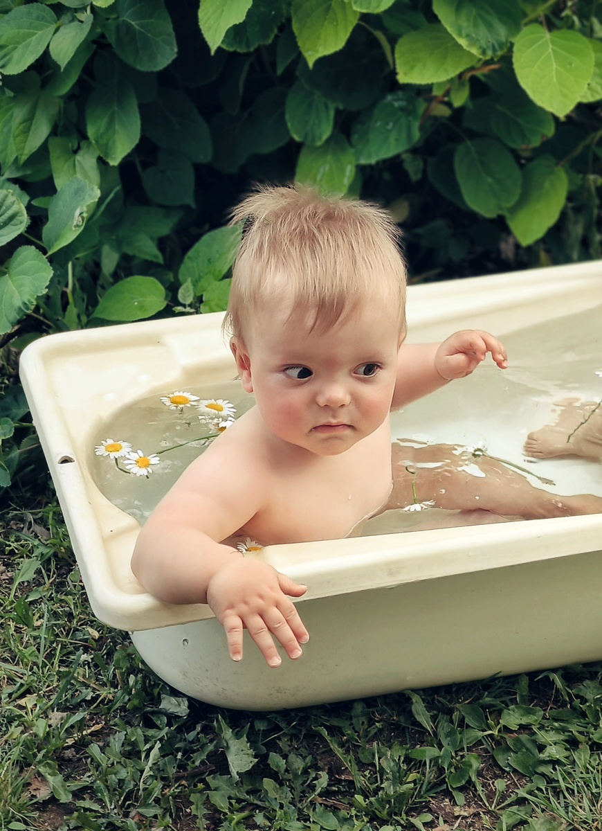 День семьи, любви и верности мы с мужем встречали не вместе, к нашему большому сожалению. Муж в городе на работе, трудится на благо семьи, я с малышами отдыхаю 😉 в деревне. Решили порадовать папу небольшой фотосессий и с вами поделюсь 🤗. Давно я приглядывалась к ванночке из моего детства, в которой мы так любили с сестрой купаться. Сейчас у нас стоят жаркие деньки и вот лучший момент настал. Устроили малышам их первое совместное купание на улице. К нашему счастью и даже удивлению, братья были просто в восторге, когда мы их посадили в воду, они визжали от радости и плескались. Добавили по вкусу нежные ромашки - символ праздника. Когда посадили Колю, надо было видеть его лицо, но благо это только первая реакция на что-то новенькое, он у нас особо осторожный товарищ 😄. Потом как-то быстро братья смекнули, что бояться нечего и надо радоваться. И пошло веселье, не упуская момента 😃. Близнецы разместились достаточно удобно, подпирая мягкими бочками друг друга. Впервые в этом году у нас
